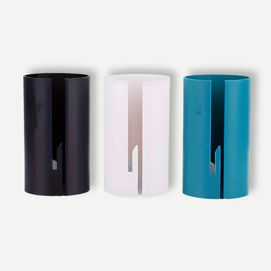 Un rouleau de papier cadeau ne rentre pas sur le plateau d'un massicot. Couper l'emballage avec des ciseaux produit systématiquement un bord en biais. Le coupe-papier cadeau résout ce problème avec un geste unique : on le pose sur le rouleau, on tire — la lame intégrée et protégée produit une coupe droite et nette en un seul mouvement, sans mesurer, sans déplier le papier à plat.